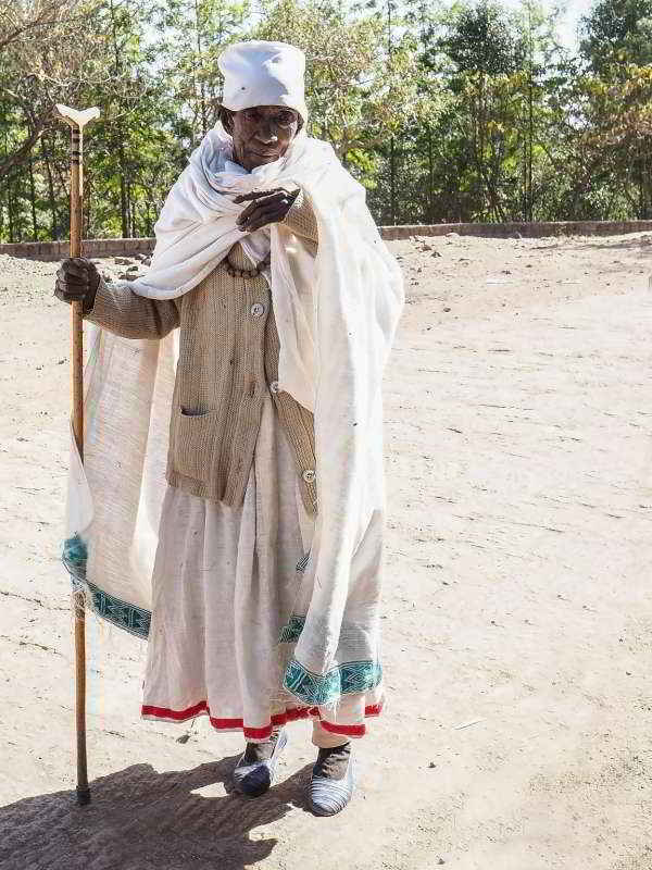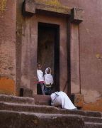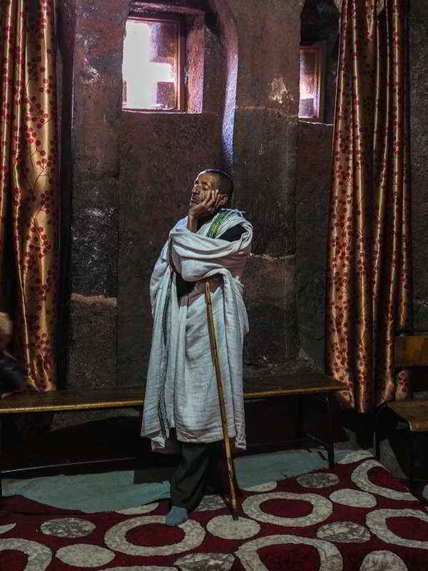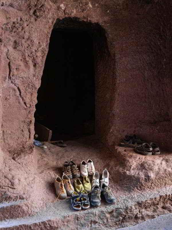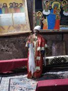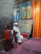 Wir haben einige weiteren Kirchen und Kapellen besucht, wollten dann aber noch zur "Bete Kiddus Georgiys" Kirche, der kreuzförmigen berühmtesten Kirchen von Lalibela. Diese war aber schon geschlossen, es war nach 17 Uhr. Es ist kein Problem zu Fotografieren, die Priester, welche in jeder der Kirchen sitzen, stellen sich z.T. sogar in Pose. Die einzige Vorschrift ist "Schuhe aus".