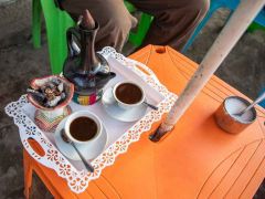 Nach diesem anstrengenden Tag genossen wir endlich mal einen originalen äthiopischen Kaffee. Mit Zucker ein Genuss. Das anschließende äthiopische Abendessen konnten wir nicht richtig genießen, es war irre scharf.