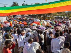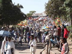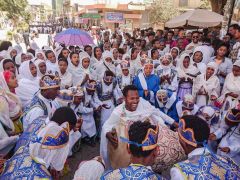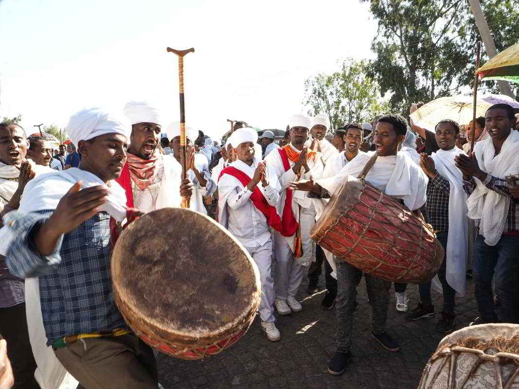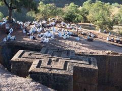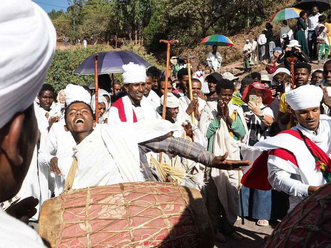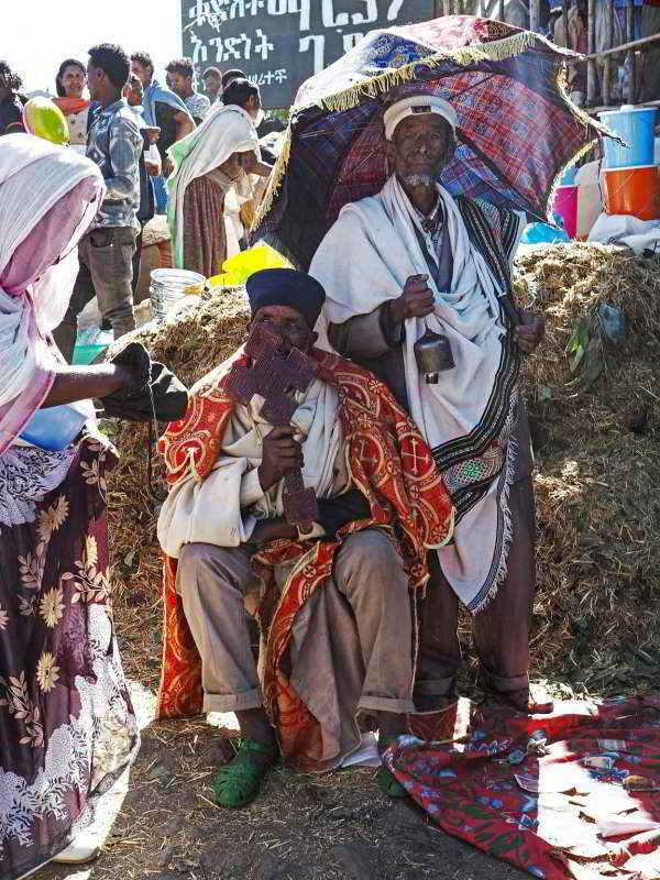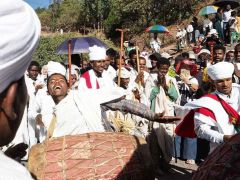 Timkat (Taufe Christi) ist ein Termin, zu welchem man wenn möglich in Lalibela sein sollte. Mittags geht dann der Umzug los, mit gruppenzugehöriger Bekleidung angezogene Trommler- und Sängergruppen. Aber auch Stöcke schwingende Männergruppen sowie unendlich viele äthiopische Menschen und Touristengruppen ziehen von allen Seiten auf den Hauptplatz zu.
