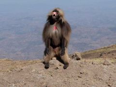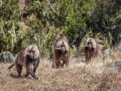 Bei der Abfahrt die ersten "Dscheladas" (Geladas), haben wir die Blutbrustpaviane gesehen. In "Hayk" gibt es einen Campplatz am See mit vielen Marabus.