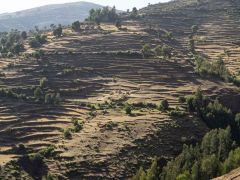 Morgens 6° C, zum Pass in 3300m Höhe. Erstaunlich ist, dass auch in diesen Höhen die Flächen zu 99% landwirtschaftlich genutzt werden, z.T. auf terrassierten Feldern. Die Hauptstraße geht dann nochmal bis auf 3350m und hinunter bis auf 2000m Höhe. Wir gewöhnen uns so langsam an das permanente auf und ab.