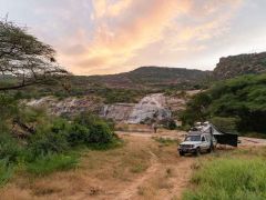 Der Wasserfall rauscht, und ein Bach fließt durch unseren überdachten Frühstücksplatz. Ab 9.30 Sonnenschein, wir wollen heute noch nach "Mojale" der Grenzstadt Kenia-Äthiopien, ca. 470km entfernt.