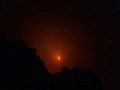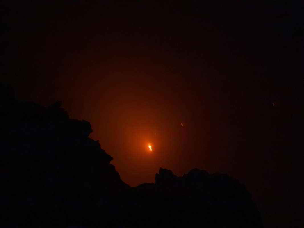 Man geht normalerweise nachts auf den Berg, weil es da nicht so heiß ist. Bei unserer Wetterlage war es aber feucht und kühl, obwohl ich vom Schwitzen auch von innen her ein klatschnasses Hemd hatte. Aber die Quälerei hat sich gelohnt, wir haben ein kleines Stück flüssiges Erdinneres gesehen und das Zischen und Pfeifen der Erdgötter gehört. Dann zum Schlafplatz in Steinhütten unterhalb des Kraterrandes.