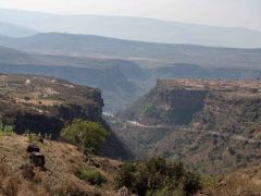 7.00 Uhr wieder nur 5,8° C. Ich dachte, wir seien in Afrika. Der tolle "Nil Canyon" hält uns gewaltig auf. Die Abfahrt beginnt bei 2550m, dann hinab auf 1050m und wieder hinauf auf 2550m, und das alles auf 42km, um dann über 3200m in das Chaos von "Addis Abeba" wieder auf 2100m hinunter zu fahren.