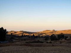 Dann ab "Moyo" direkt nach Norden, eine Umfahrung von Addis Abeba auf Asphaltstraße. Tolle Landschaft, bis hinauf auf 3100m zu einem Nachtplatz bei "Shola Gebeya" bei Bauern.