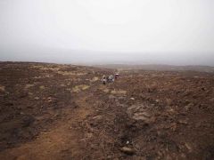 Nach 360km Weiterfahrt erreichen wir dann das Basislager zur Besteigung des Vulkans "Erta Ale". Wir befinden uns auf -125 Meter unter Meeresspiegel. Der Berg ist 615m hoch, so dass wir ca. 750mAufstieg vor uns haben.