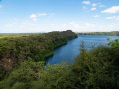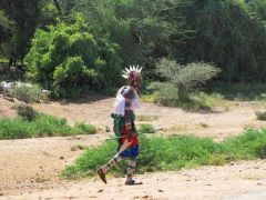 Auf der Fahrt sehen wir ein paar Samburu in ursprünglicher Bekleidung. Unterwegs hinter "Marsabit" fahren wir an einem großen Kraterloch vorbei. Gegen Mittag sind wir in der "Dida Galgalu Dessert" bei 36° C und bedecktem Himmel.