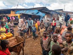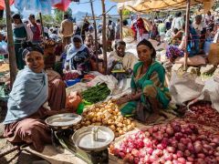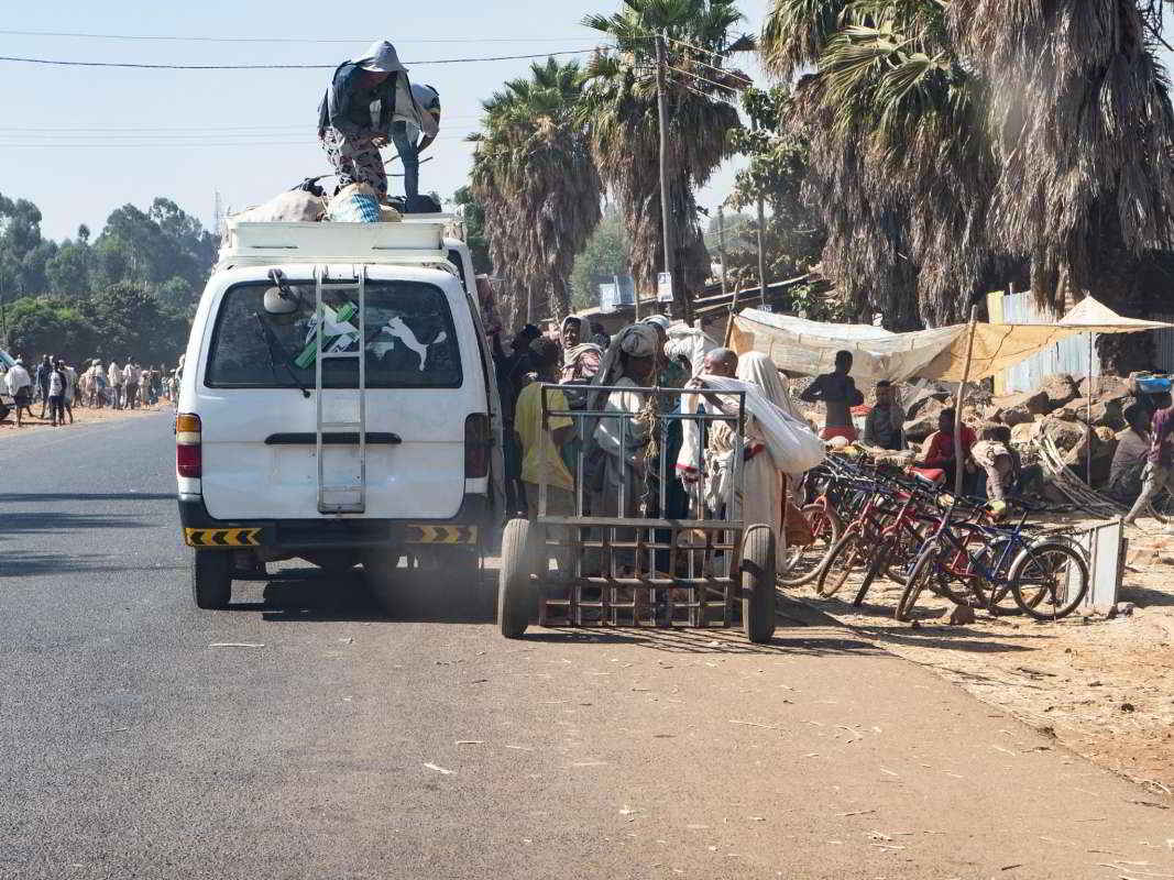 Eine fantastisch beleuchtete Landschaft begleitet uns morgens. Auf der Strecke von "Woldiya" nach "Lalibela" haben wir einen riesigen Markt besucht, fotografieren kein Problem, die Menschen alle sehr freundlich.