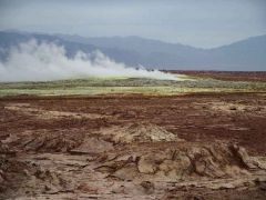 Frühstück, dann noch zum "Afdera See" mit seiner heißen Süßwasserquelle. Nach dem Mittagessen dann die 310km zurück nach Mekele.