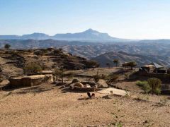 Abfahrt nach "Mekele" durch fantastische Landschaft zunächst auf Asphalt, dann Richtung Ost nach Korem auf Piste. Nicht genug, denn auf der Strecke sind "nur" 6 Pässe, deren tiefste Punkte bei 1600-2000m, die höchsten Pässe aber bei 2600-3000m liegen. So brauchen wir für die 310km nach Mekele 10 Stunden Fahrzeit. Unterwegs müssen wir tanken, aber die Tankstellen in "Maychew" sind alle wegen Timkat geschlossen. Wir finden dann ein paar Jungs, bei denen wir einen Kanister voll bekommen.