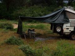 Westlich vorbei am Mount Kenia und am "Samburu National Reserve" finden wir dann einen Straßenabzweig (N 00.43.700/ 0 37.34.700), der uns zu einem tollen Lagerplatz führt. Abends fängt es auch hier wieder an zu regnen, fast die ganze Nacht hindurch.