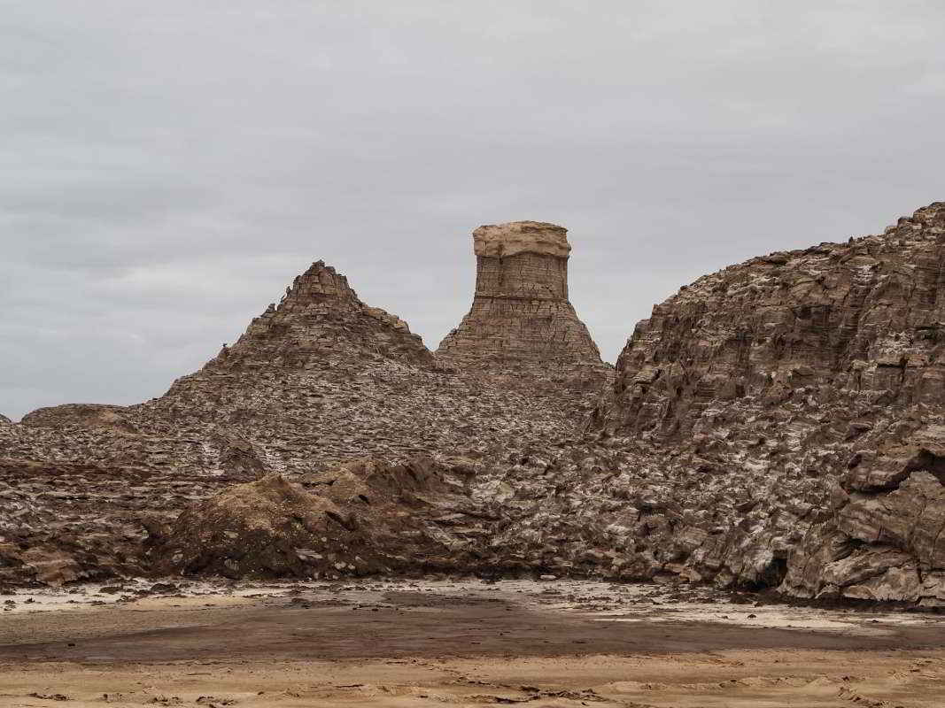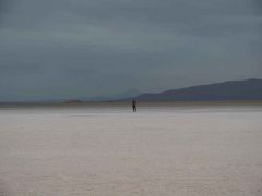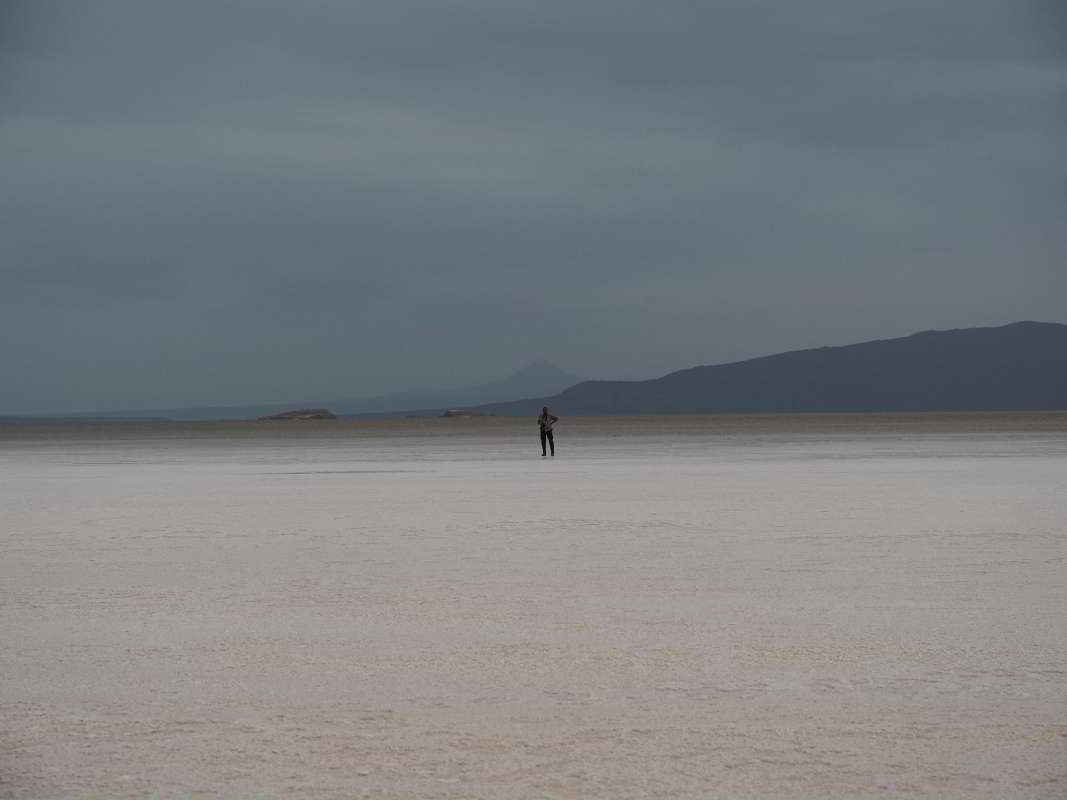 Leider oder Gott sei Dank ist es bedeckt bei ca. 25°C, wobei dies hier einer der heißesten Orte der Erde ist. Temperaturen bis zu 60°C sind hier scheinbar gemessen worden. Unterwegs habe wir Gelegenheit, uns die Strukturen dieser riesigen Salzfläche genauer anzusehen.