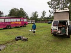 LKW-Verkehr (Durchschnitt 40km/h), hier gibt es keinen Sonntag. Durchgekämpft zum "Jungle Junction Camp". Als Quartier in Nairobi brauchbar, da Alleinstellung, aber sonst ohne weiteres Engagement von Chris dem Betreiber, außer, dass er alles mit "Abenteuer Afrika" abtut.
