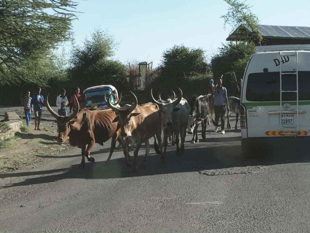 Die Straße teilen wir uns mit "TukTuks" vielen Tieren wie Ziegen, Schafen, Kamelen, Eseln und Kühen.