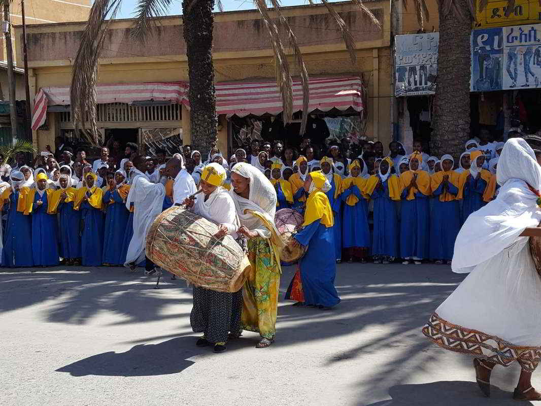 Sofort am Morgen einen Tour Operator gefunden, jeder 250 US-$ für die drei Tage Tour bezahlt und am nächsten Morgen geht es los in die "Danakil". So hatten wir den Tag frei, um durch die Stadt zu laufen. Timkat ist wohl nicht auf den 19. 01. 2020 beschränkt, denn hier in Mekele sind wir in einen weiteren Umzug geraten.
