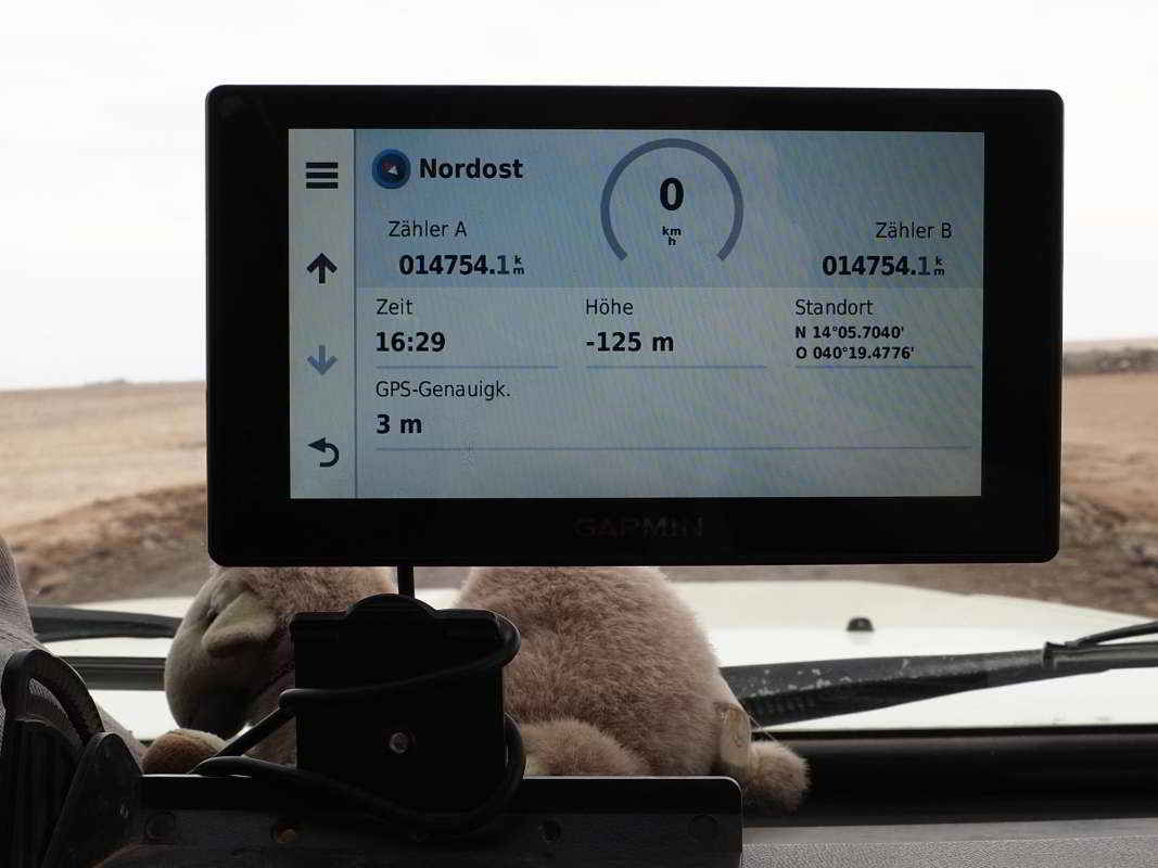 Die Nacht verbringen wir in der "Dida Galgalu Dessert" bei einem Abzweig von der Straße. Auch hier sofort viele Einheimische am Auto, obwohl wir so gut wie keine Behausungen gesehen haben. Der Mullah gibt uns die Erlaubnis hier zu stehen, und alles ist gut, warm und regenfrei.