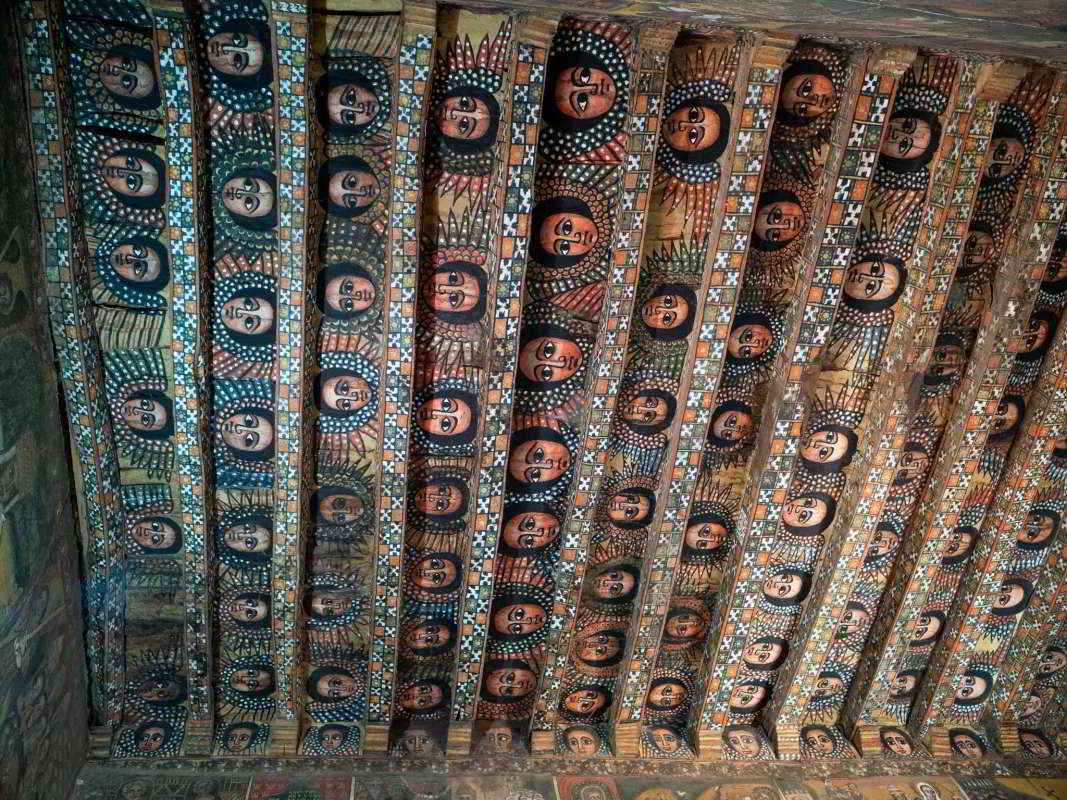 Dann eine tolle Kirche besucht: "Debre Berhan Selassie" aus dem Jahr 1614 mit der "Engelsdecke", d.h. lauter Gesichter an der Decke.
