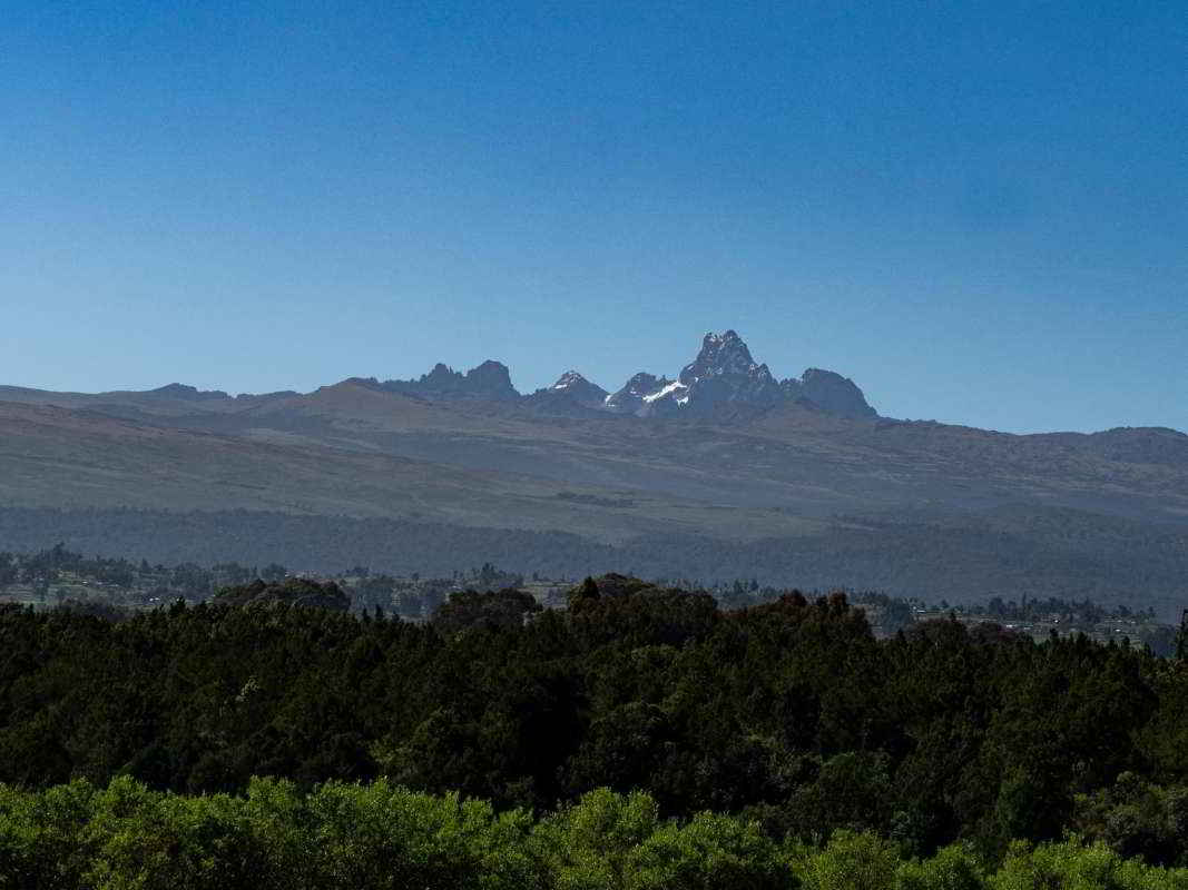 Volle Sicht auf den 5200m hohen "Mount Kenia" von der Straße aus, die auch hier auf 2600m Höhe verläuft.