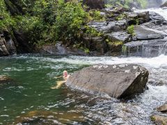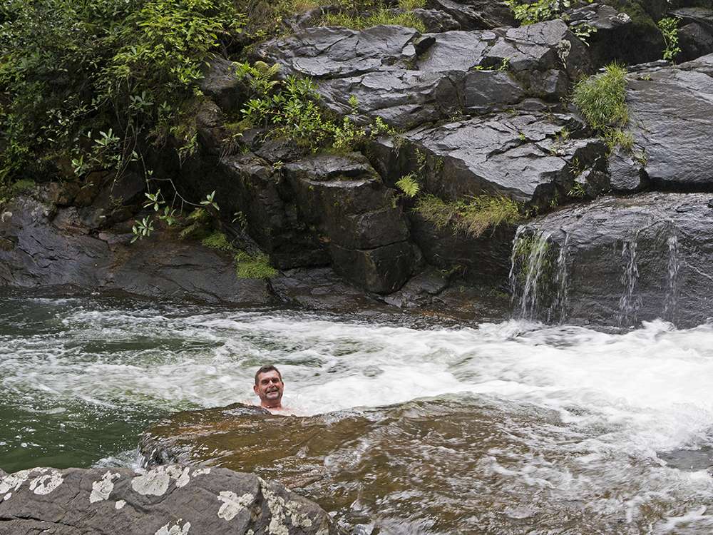 Nachmittags sind wir zum Fuß des Wasserfalls hinabgeklettert und haben dort an einer ungefährlichen Stelle gebadet.