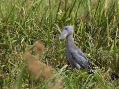 Zitat aus „Tierlexikon.de“ und Wikipedia: Es gibt nur noch zwischen 6500 und 8000 Schuhschnäbel, die meisten im Südsudan. Sie sind tagaktive Einzelgänger, die in Sümpfen leben, bis zu 1.20m Länge und 1.15 m Höhe erreichen, sowie bis zu 6,5 kg wiegen können. Den Namen verdanken sie ihrem Schuhförmigen Schnabel der ca. 22 cm lang, 12 cm tief und 10cm breit ist. Der Schnabel ist in der Vogelwelt einmalig. Ernährung: Lungenfische, Frösche und sonstige Weichtiere.