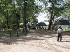 Kein Problem dort im „Wildlife Camp“ den besten Stellplatz zu bekommen, wir sind allein dort, außer einer Engländerin in einem der Bungalows, die Vögel fotografiert. Man wird abends zum Essen mit einem Auto abgeholt, es sei wegen Löwen usw. zu gefährlich durch den Campplatz oder am Luangwa entlang zu laufen.