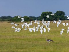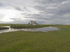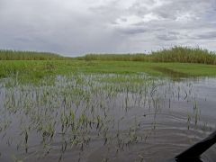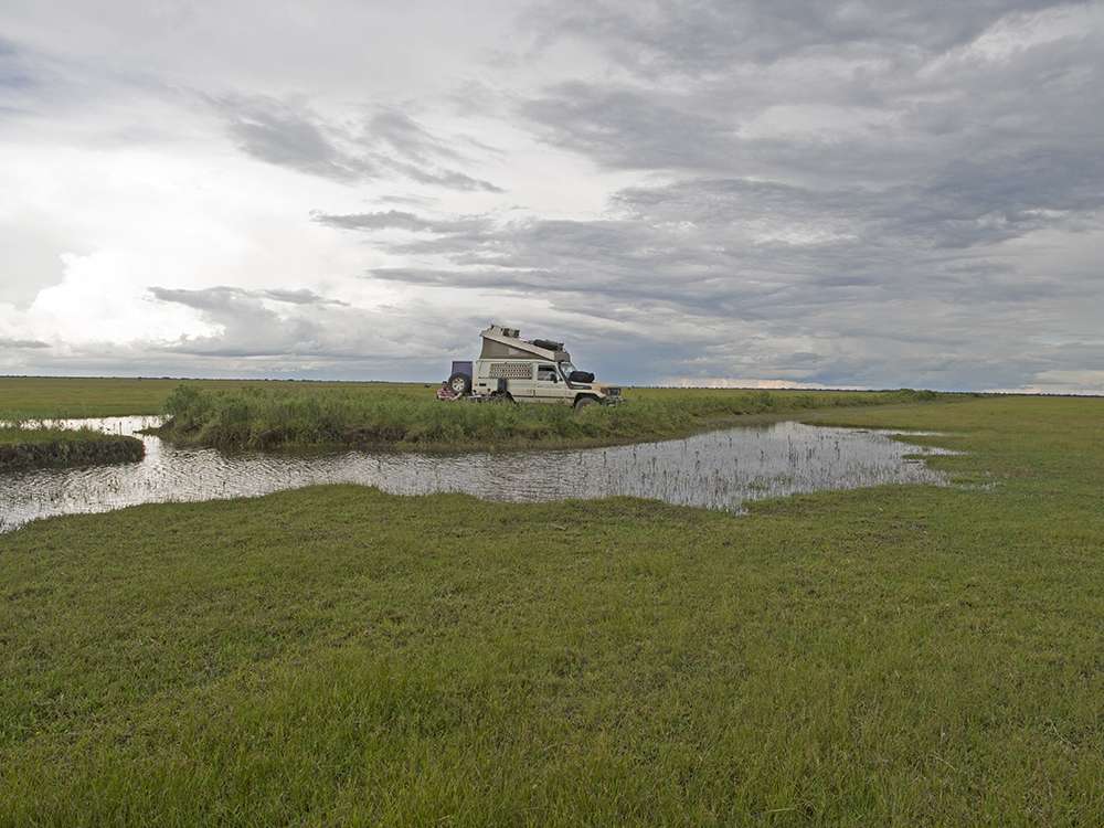 Man wundert sich hier schon etwas über die Touris, die in der Regenzeit hierher kommen, denn die Wiesen stehen unter Wasser. Normale Besucherzeit ist in der Trockenzeit zwischen September und November. Da sind die Wiesen alle staubtrocken.