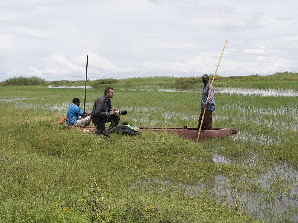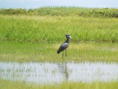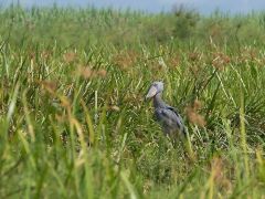 Dann nach über 3 Stunden entdeckt der Chef einen einzelnen Schuhschnabel. Wir sind begeistert, steigen aus dem Kanu - aber ganz leise, denn die Vögel sind sehr scheu.