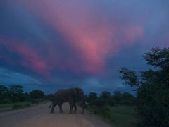 Wir erleben einen tollen Sonnenuntergang mit einem „Fast-Crash“ mit einem Elefanten und haben abends noch eine Herde Antilopen mitten im Camp.