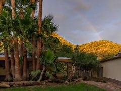 Nach Norden am Flugplatz vorbei ca. 30 km bis „Vasbyt Ranch/Lodge“. Wird geführt von einem Südafrikaner und seiner Frau aus Stuttgart. Fantastischer Garten mit sehr vielen uns unbekannten blühenden Pflanzen. Dazu 6 Hunde.