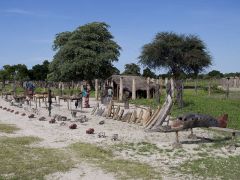 Vorbei an Straßenmärkten bis zur Übernachtung im „Mururami Camp“ zwischen Grootfontain und Rundu, vor „Fleischkontrolle“ (18°47`62/18°55`57)