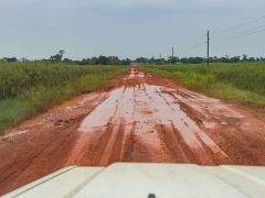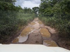 Ob die in der Trockenzeit viel besser ist, bezweifeln wir. Aber wir haben 1000 km Umweg gespart. 20 km weiter übernachten wir in einer Kiesgrube neben der Piste. Wir haben für heute genug, obwohl es nur ca. 150 km waren.