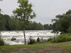 Von „Samfya“ aus über „Mansa“ und die „Mumbuluma Falls“ an der Kongogrenze mit dem Grenzfluss „Luapula“ entlang, Richtung “Mbereshi“. An den „Ntuma Chushi Falls“ 20 km vor „Kawambwa“ übernachten wir. Die Wasserfälle sind schön, als Übernachtungscamp ist dieser Platz gut geeignet. Unterwegs an der Straße wird man kaum etwas zum Übernachten finden, auch hier wieder die ganzen 200km Strecke ein Dorf z.T. mit schön bemalten Häusern.