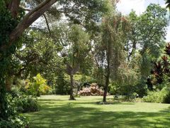 Übernachtung in Sesheke in „Brendas Best Baobab“ - gut. Schön angelegter parkartiger Garten direkt am Sambesi. Abends ein sehr heftiges Gewitter.