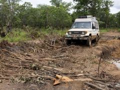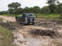 Die 70 km bis „Mporokosa“ sind tiefe Moderstrecke, an einem großen Lkw, der bis zu den Achsen im Schlamm steckt, kommen wir vorbei, einen Kleinen Lieferwagen ziehen wir raus, um vorbei zu kommen.