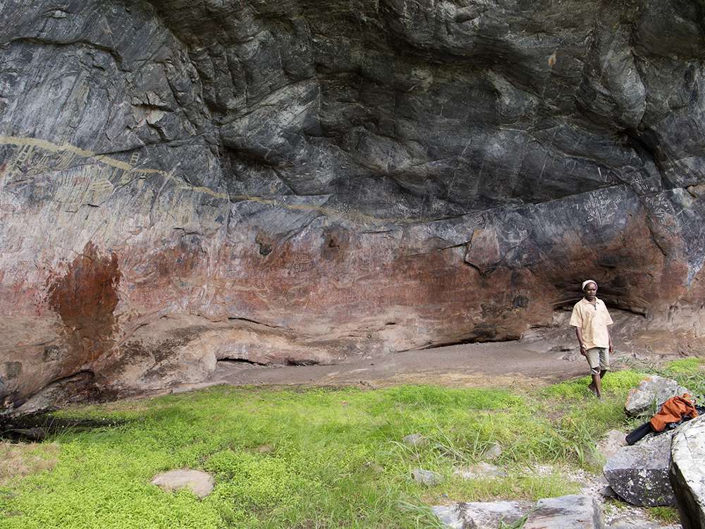 Am Abzweig zu den „Naslu Caves“ verlassen wir die Hauptstraße. In dem Felsüberhang finden wir ca. 17 000 Jahre alte (?) Zeichnungen und Ritzungen die wie Leitern aussehen. Muss man nicht unbedingt gesehen haben.