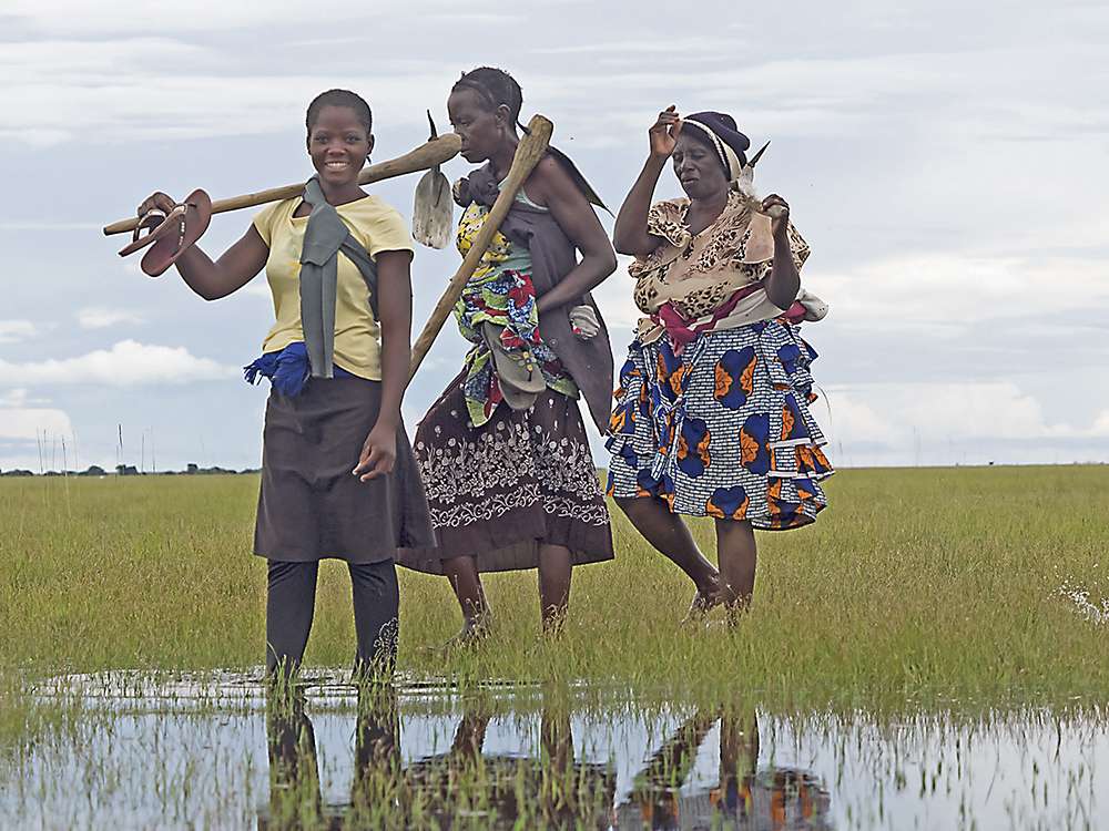 Auf dem Rückweg sehen wir noch fliehende Bangweulu- Antilopen und werden von freundlichen Frauen verabschiedet.