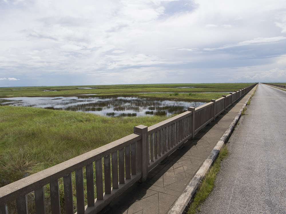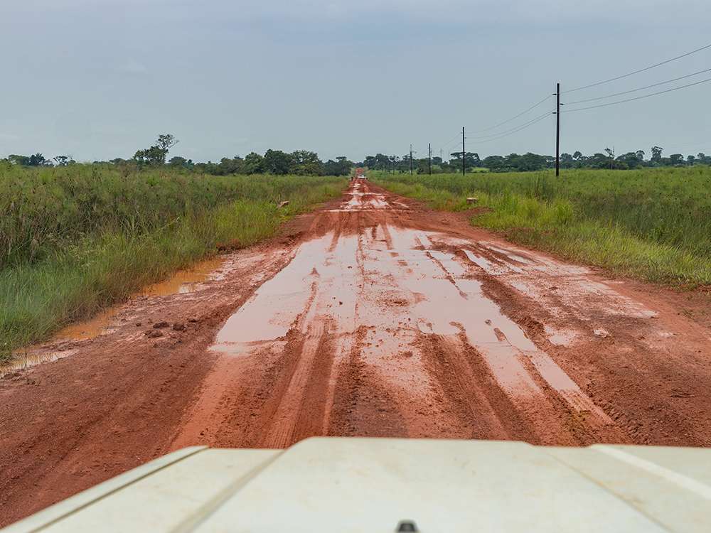 Bis auf eine Stelle hinter „Waka Waka“ mit der Durchquerung eines kleinen Flüsschens keine weiteren Schwierigkeiten bis „Samfya“ am Lake Bangweulu. Dabei überqueren wir einen sumpfigen Teil auf einer von Chinesen erbauten 3 km langen Brücke. Erstaunlich sind die spitzigen Termitenbauten im Sumpf.