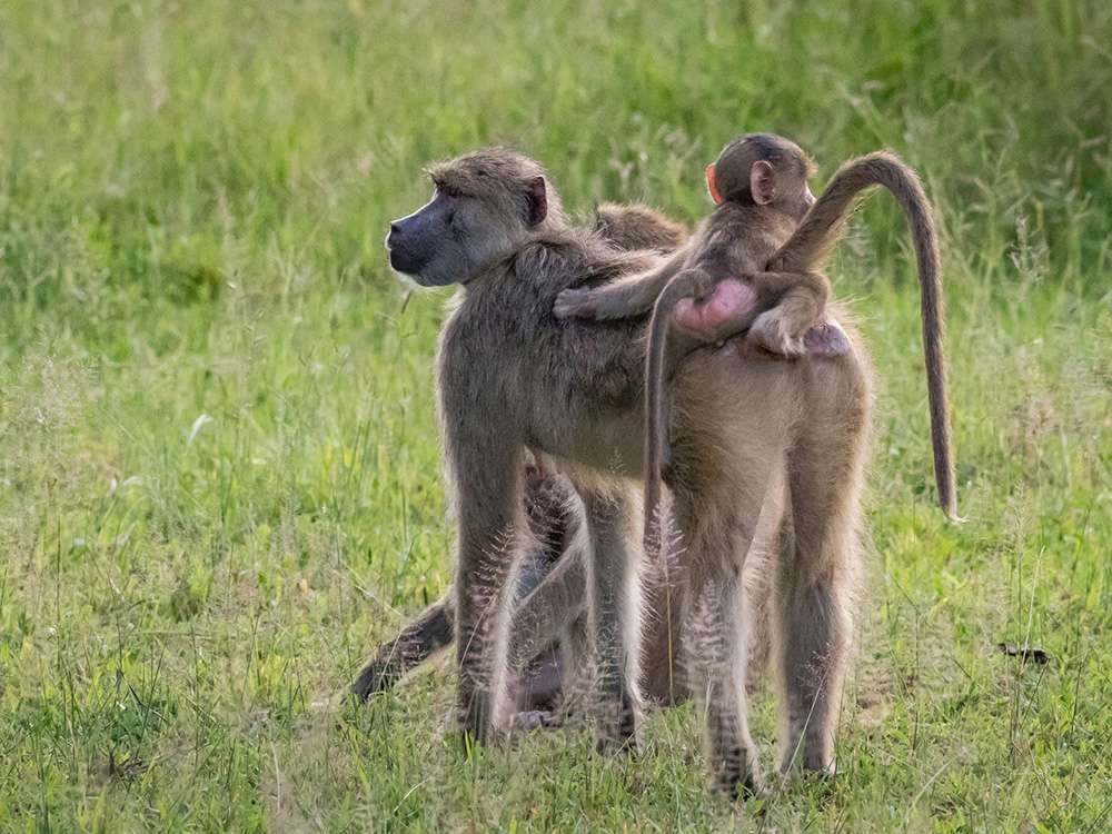 Rumgammeln, rund um das Camp die Umgebung erforscht, Pavianherde und eine Elefantenkuh mit Jungem gesehen.