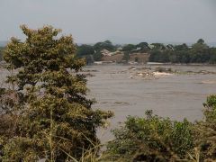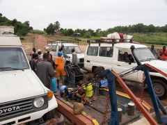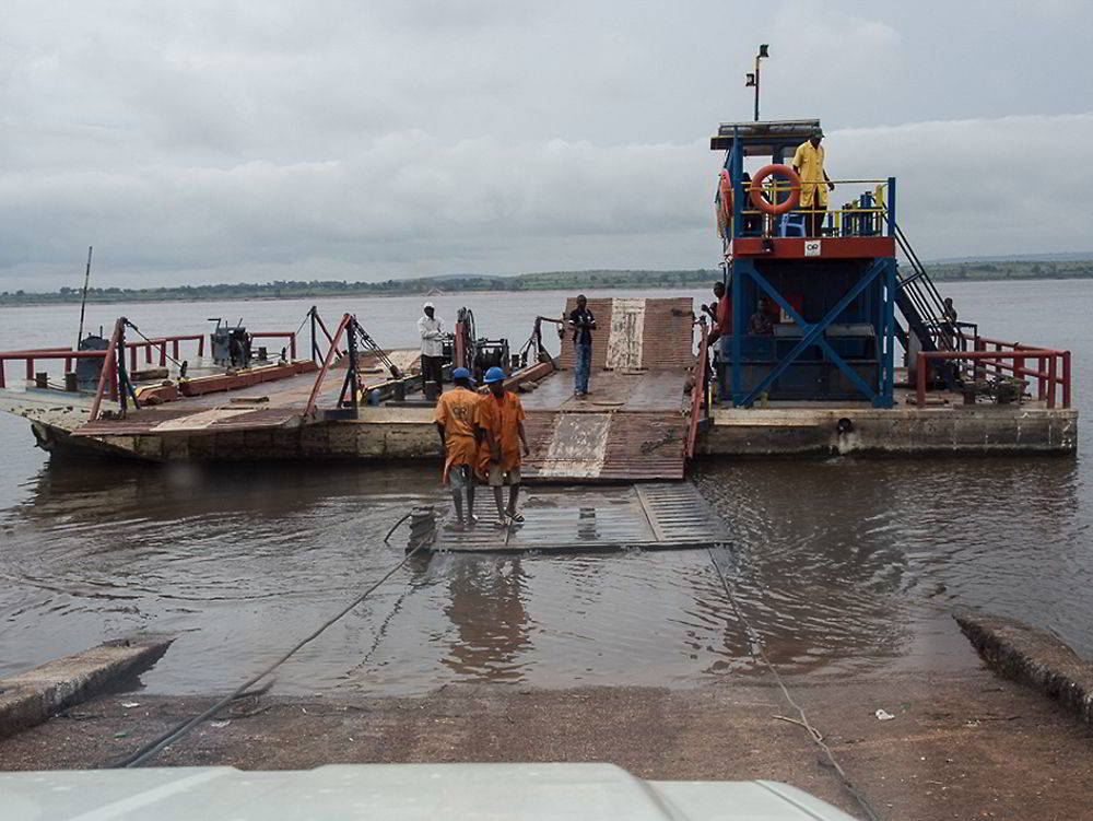 Regen, statt um 8.30 fährt die kleine Fähre mit 4 Autos für 20 US$ erst um 10.15 ab. Ist aber egal, da die Straßenschranke auf der anderen Seite des Kongos wegen Regens bis gegen 11.15 Uhr sowieso geschlossen ist.