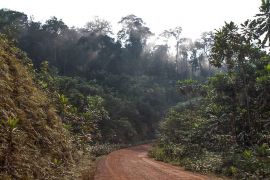 Auf der Fahrt Richtung Libreville schwierige Nachtplatzsuche.