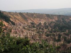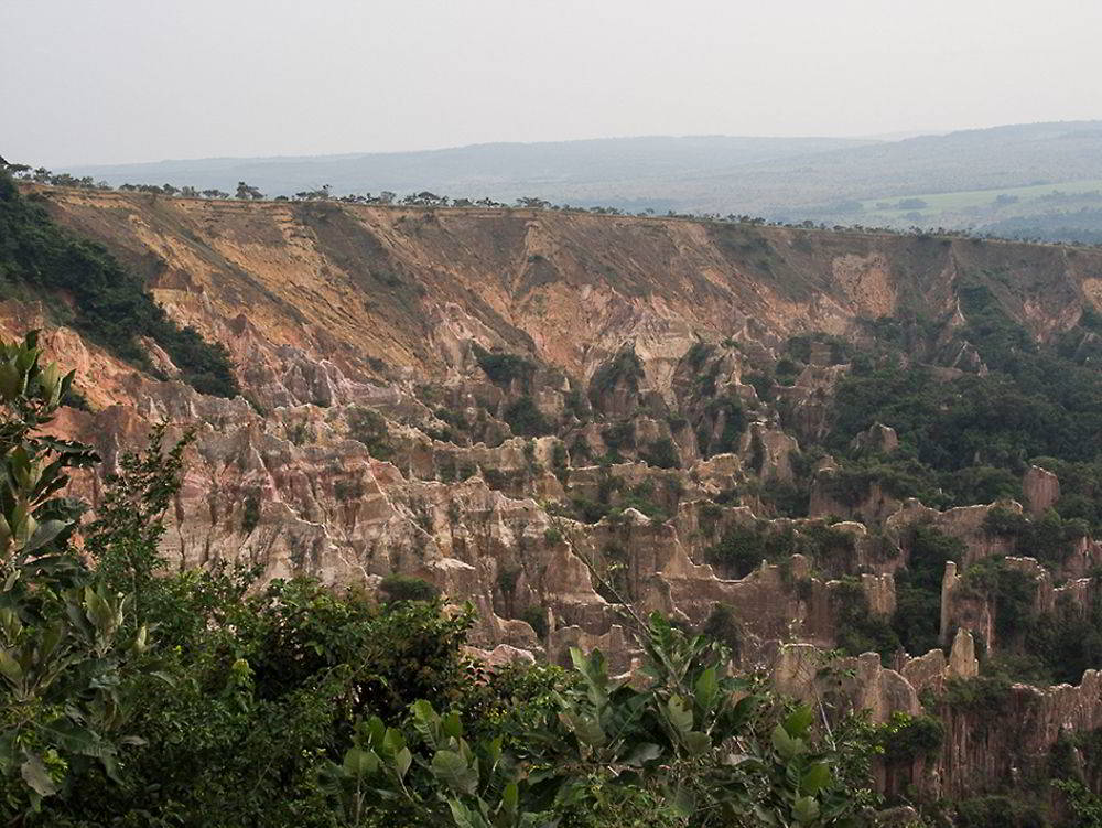 Irgendwie muss man die Straße nach Akou finden, dann gibt es nach ca. 6km hinter Lekoni sogar ein Schild, wie wir am nächsten Morgen feststellen können. Wir fahren jedoch irgendwo querfeldein bis wir am Canyon sind. Sehr schön und lohnenswert. Übernachtung auf einer buschigen Hochfläche, wir sind aus dem Urwaldgebiet raus.