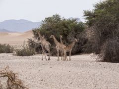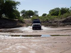 Weiteres Gerumpel auf Wellblech über Orupembe nach Purros. (Nest ohne Infrastruktur). Auf der Suche nach Tieren, wir sehen die ersten Giraffen, fahren wir ca. 8km den Hoarusib flussabwärts – offroadig auf einer Spur, die plötzlich durchs Wasser führt.