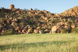 Andreas, der Besitzer der Farm, fährt mit uns an seinen Staudamm und seine Hütte oberhalb der Ranch. Tolles Offroad Gelände, aber auch die Aussicht ist toll. Abends werden wir zum immerhin 60km östlich gelegenen Flugplatz gebracht.