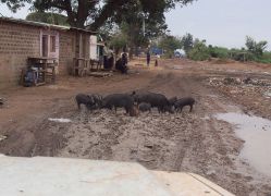 Die Piste nach Kimpese ist auch bei Regen kein Problem. Abzweig in Songolo, da es wieder regnet nur noch Matsch in Richtung Luvo-Angola. Man will wohl nicht, dass hier jemand fährt trotz des starken Verkehrs, denn die Piste ist nach dem Regen in katastrophalem Zustand – riesige wassergefüllte Löcher in der Lehmpiste. Trotzdem finden wir einen annehmbaren Lagerplatz mitten auf einem Nebenweg einer Zufahrt zu einem Landwirtschaftsprojekt.