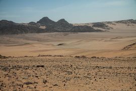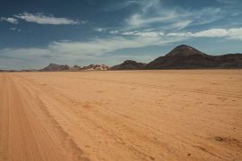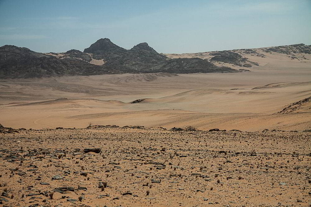 Bei Sao Nicolau (Bucht mit Leuchtturm) fahren wir weg vom Meer in eine Wüstenlandschaft – Sand und Geröll bis hin zur Fata Morgana, bis zum Abzweig nach Namibe/Lubango.