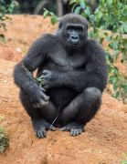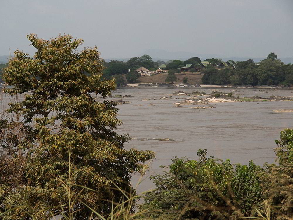 Ok, wir fahren los zu den Gorillas. Diese leben in einem umzäunten großen Gehege und kommen sofort ans Flussufer als der Ranger, mit dem wir in einem Boot auf dem Fluss fahren, ruft. Nett sind die zwei jüngeren Gorillas, aber im Vergleich zu unserer Gorillatour in der Zentralafrikanischen Republik vor zwei Jahren ist das eher enttäuschend.