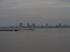 Toller Ausblick über den Kongo nach Kinshasa in der Abendstimmung am Fluss.