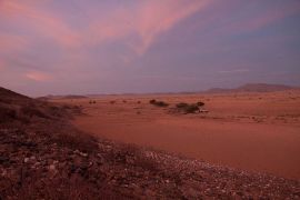 Seit Opuwo sind wir nun 820km gefahren, es gibt keine Tankstelle, für wen auch, es sind uns bisher nur zwei LKW begegnet.