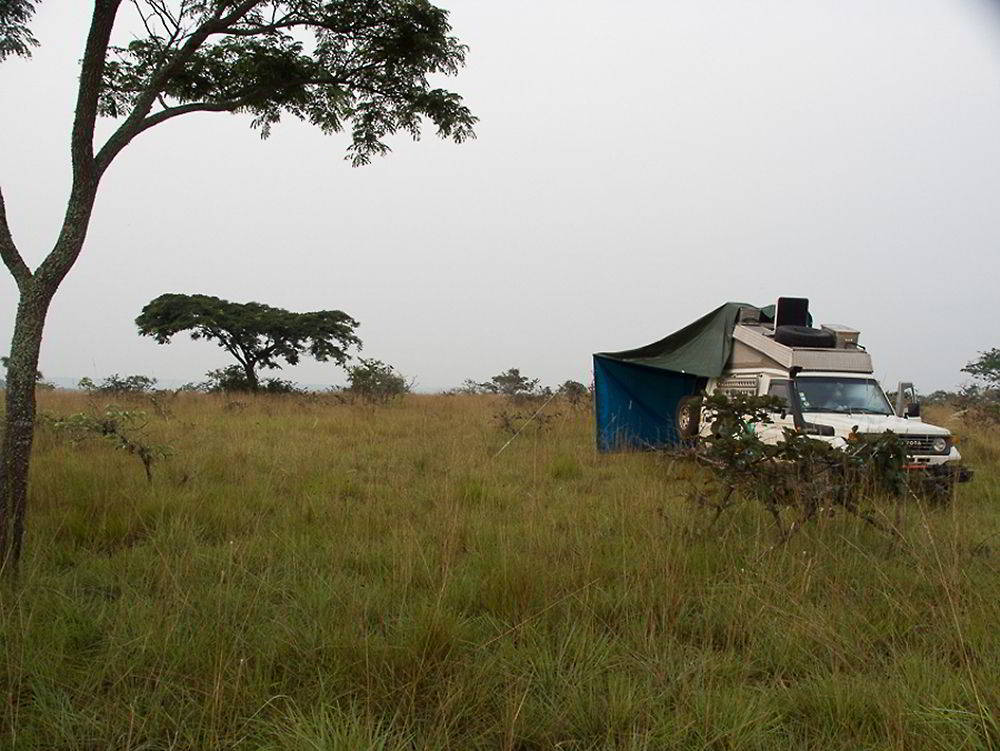 Übernachtungsplatz schwierig, da sehr bewohnt, aber auf einem Weg zum/im (lt. vorbeifahrenden Rangern) Lefinipark übernachten wir ca. 100km vor Brazzaville.