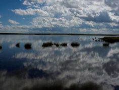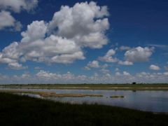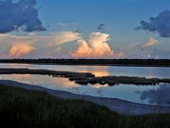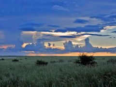 Fahrt mit viel Wasser neben der Straße über Gweta in den Makgadikgadi Park. Hier ist alles gut befahrbar, wir sitzen einsam auf Tree Island und haben keine Tiere gesehen. Imposante Wolkenbilder bei Sonnenuntergang.